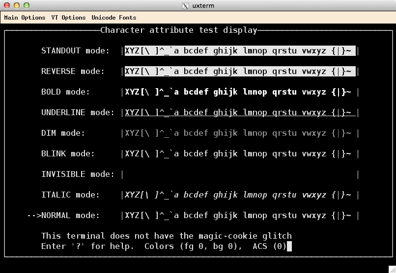 Michael Unger <spam.to.unger@spamgourmet.com> wrote: > On 2006-12-28 06:20, "JF Mezei" wrote: >> [...] >> >> I tried google, and there are so many sites that list one or two espape >> sequence that it is nearly impossible to find out whether what I am looking >> for exists or not. > There are quite a lot of escape sequences documented in > <http://bjh21.me.uk/all-escapes/all-escapes.txt> ... ...unfortunately, they're just heaped together in one place, without a cross-reference (which would show that they're from several types of terminals). For a clue regarding the depth of this file, note the first line # $Id: all-escapes.txt,v 1.32 2005/09/14 12:00:06 ben Exp @ and the 1999's pervading the text. It's basically a cut/paste job from 1999 with a handful of changes past that point. Compare with https://invisible-island.net/archives/ncurses/terminfo.src.gz or any of the references cited.